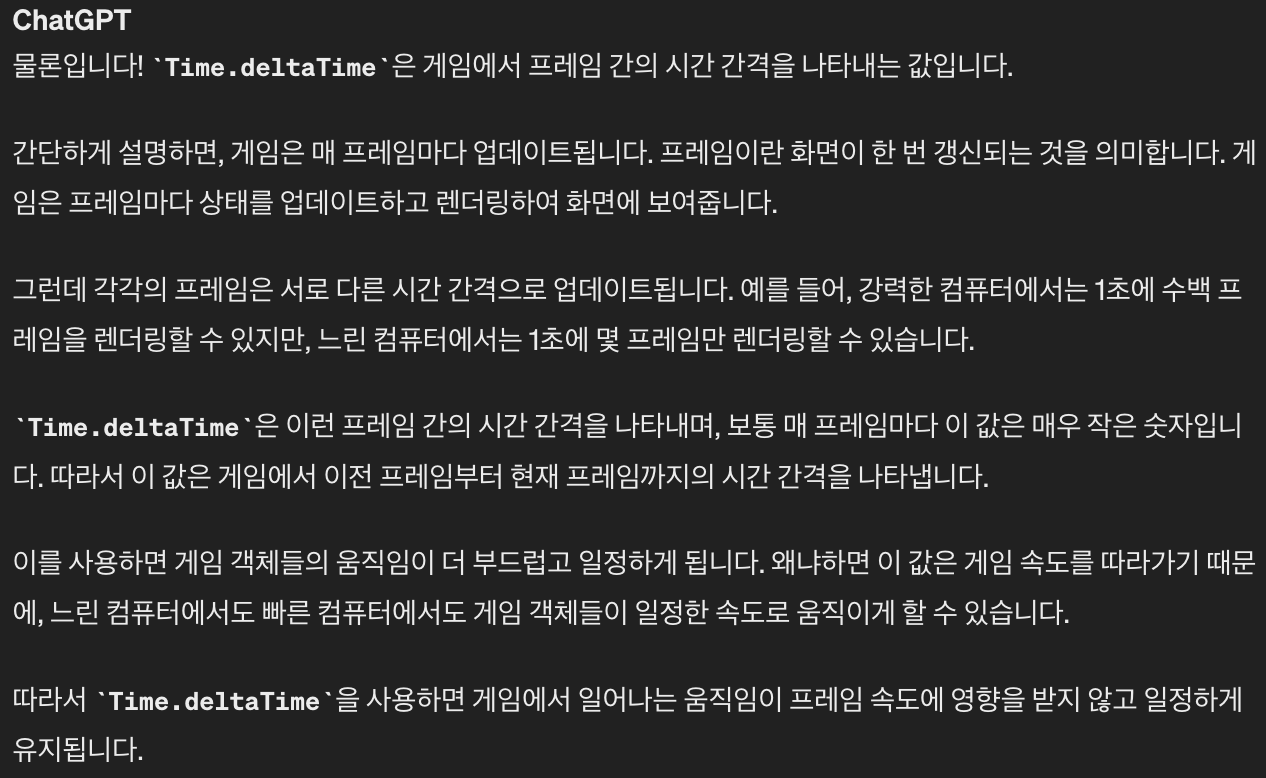 느린 컴퓨터에서도 빠른 컴퓨터에서도 게임 객체들이 일정한 속도로 움직이게 한다.
