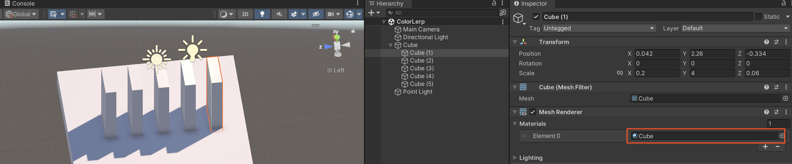 cubeMeshRenderer.material.color = Color.Lerp(