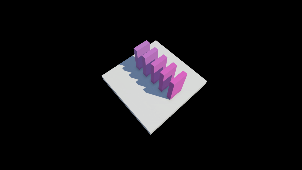 큐브를 이용해 바닥과 도미노 모양의 오브젝트 5개를 만든다.