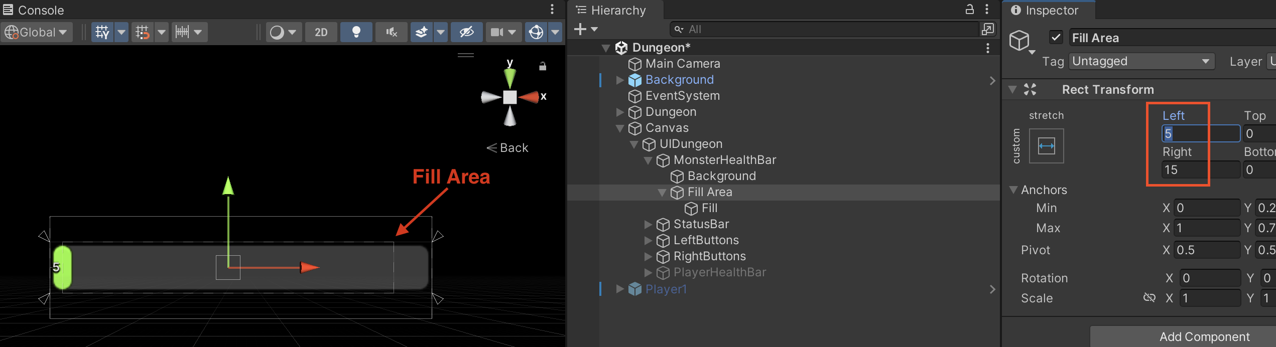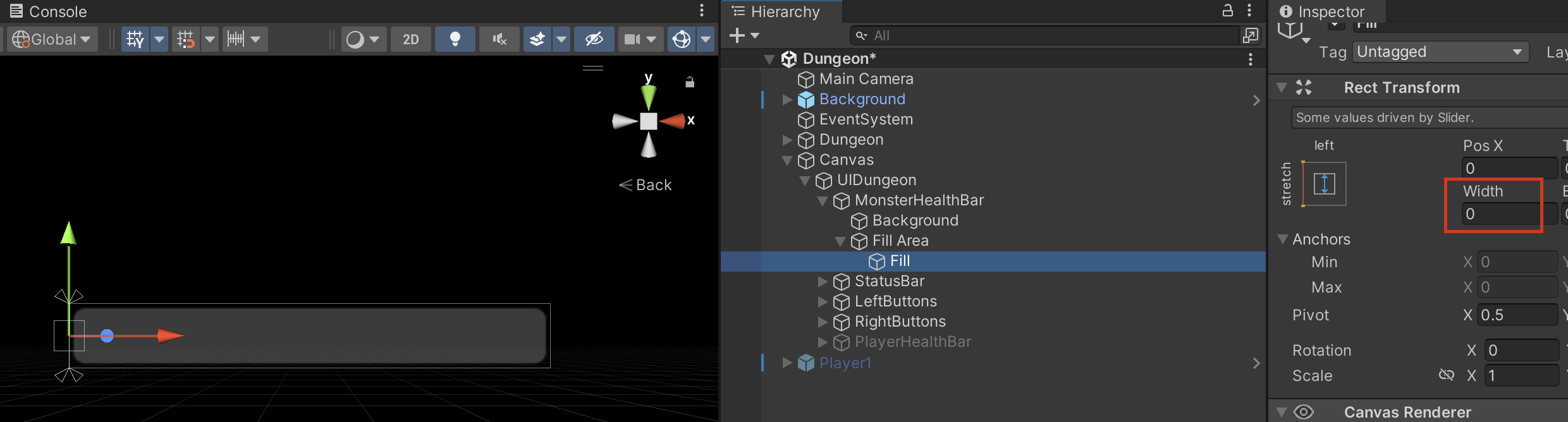 1. 먼저 슬라이더의 value를 0으로 맞춘 뒤 Fill Area의 크기를 변경